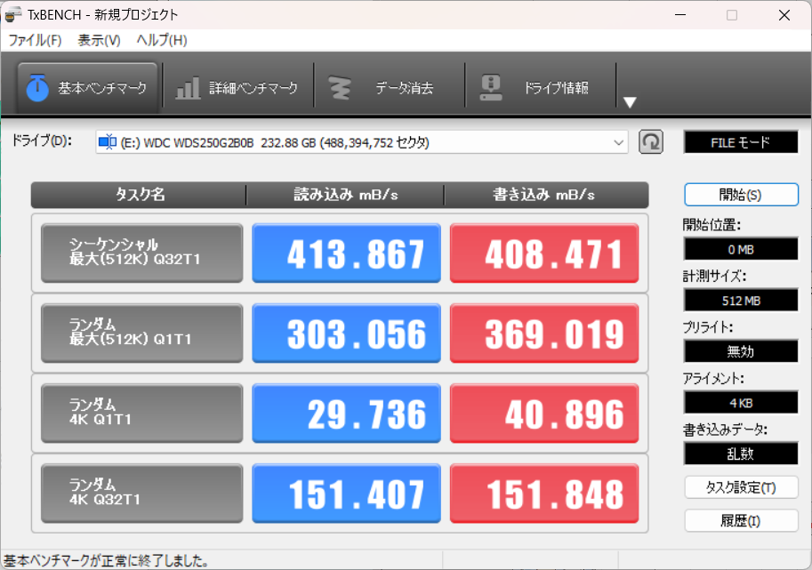 PC内蔵からUSBケースへ移行してどのくらい性能差が変わったのか、改めてベンチマーク撮ってみました。