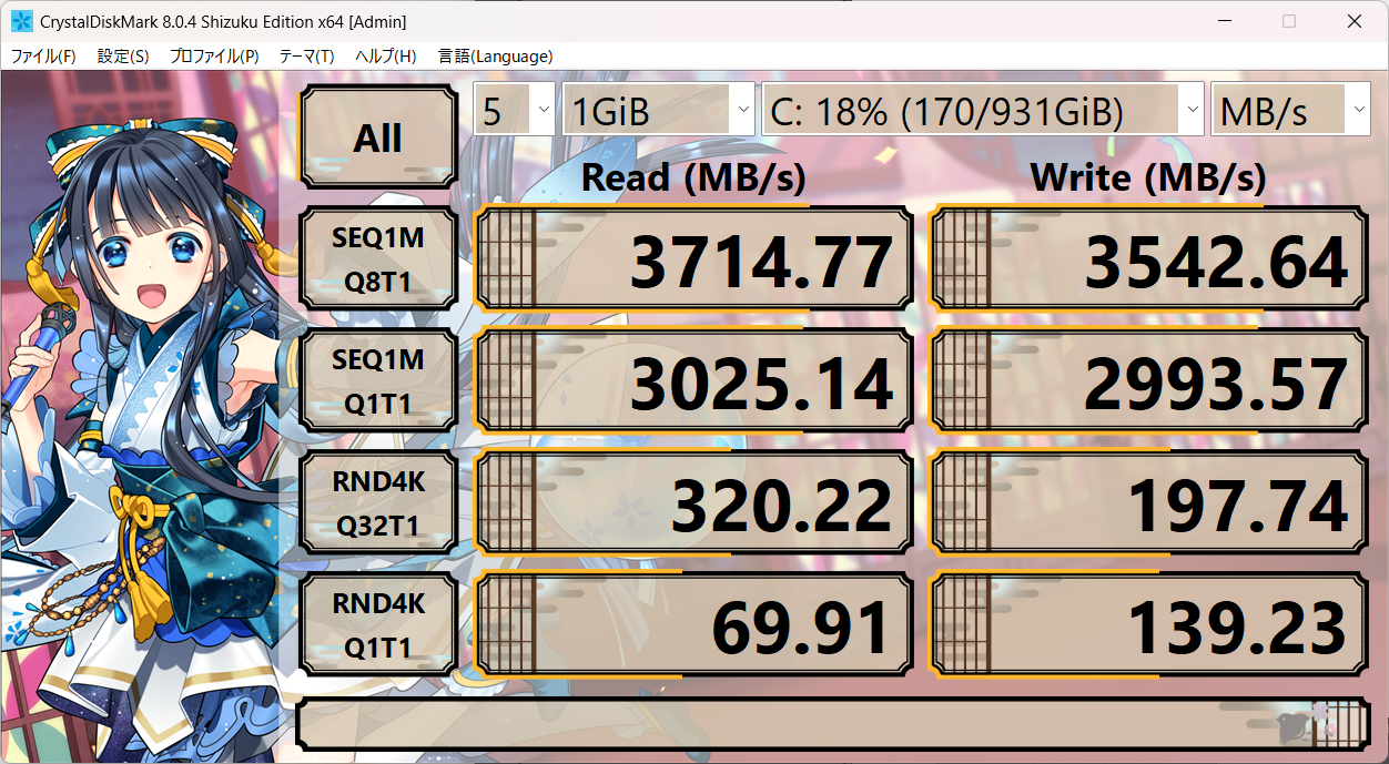 ……まあ、PCIe3.0環境なのでこんなには出ませんけど。