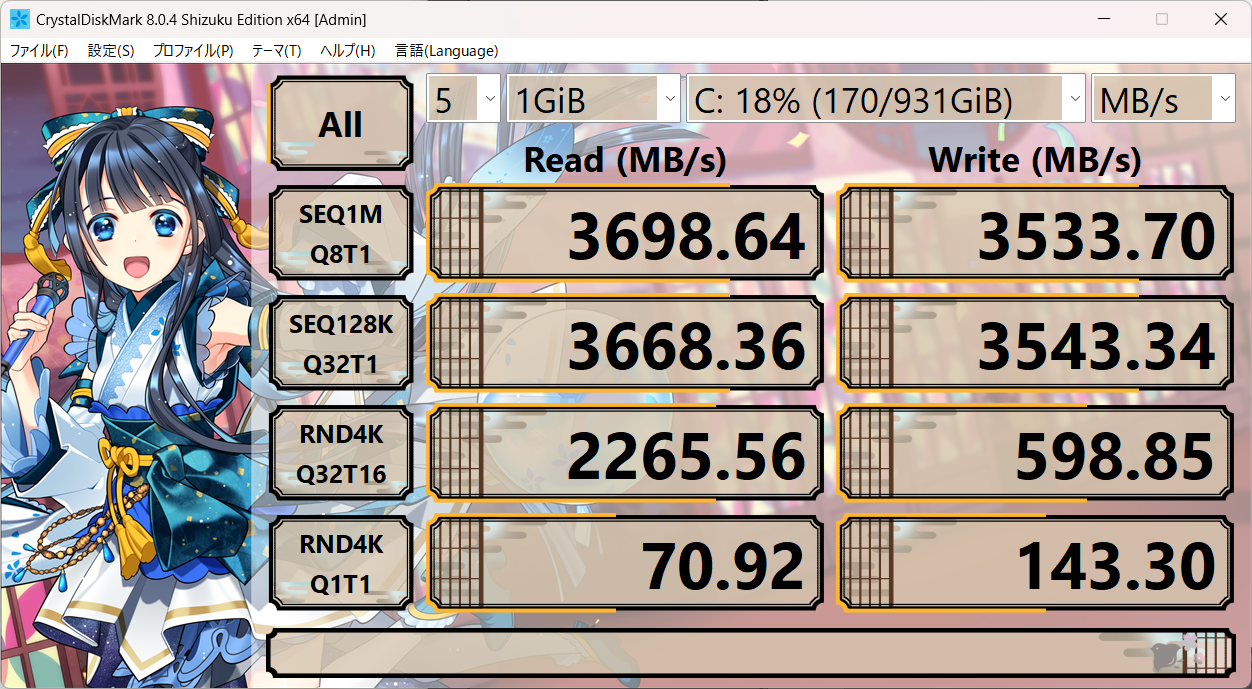 ……まあ、PCIe3.0環境なのでこんなには出ませんけど。